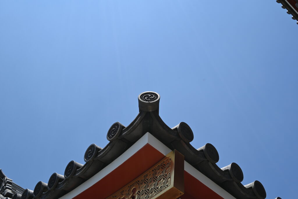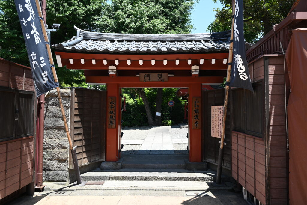 Nakamise to najbardziej zatłoczona część, ale można ją ominąć tyłem sklepów gdzie jest zdecydowanie luźniej. Następnie dochodzimy do drugiej bramy – Hozo-mon, której z kolei pilnują dwaj strażnicy Nio (podobnych widziałem w Osace, w Shitennō-ji). Na lewo znajduje się druga uliczka ze sklepami, Denboin (o której za chwilę) a na prawo znajduje się wiata pod którą ku uciesze zmęczonych turystów rozpylana jest mgiełka wodna.
