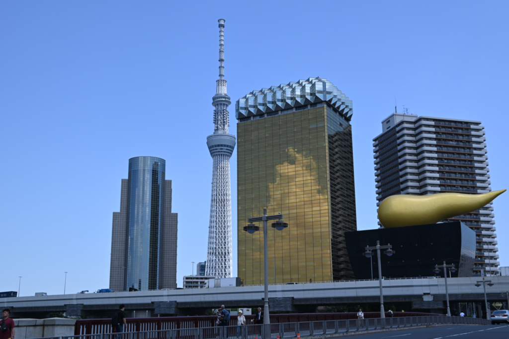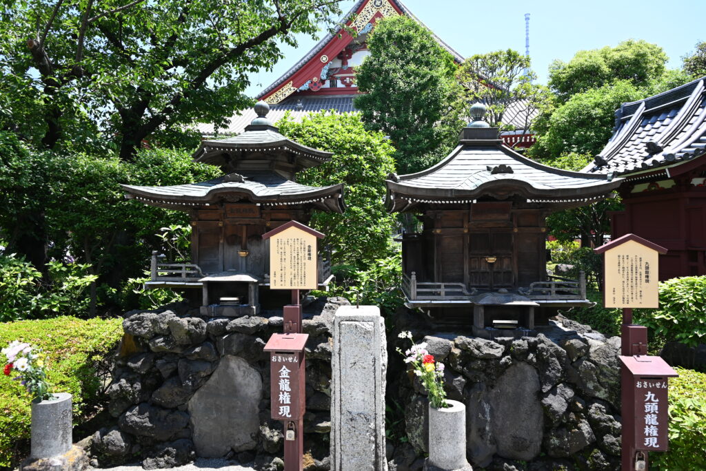 Na zachód od świątyni znajduje się wspomniana rzeka Sumida, sprzed wiaduktu Azumabashi który prowadzi do dzielnicy o tej samej nazwie jest świetny widok na Tokio Sky, oraz budynek browaru Asahi, z charakterystycznym złotym płomieniem na górze, potocznie zwanym „złotą kupą”. Kupa Płomień waży podobno 360 ton!