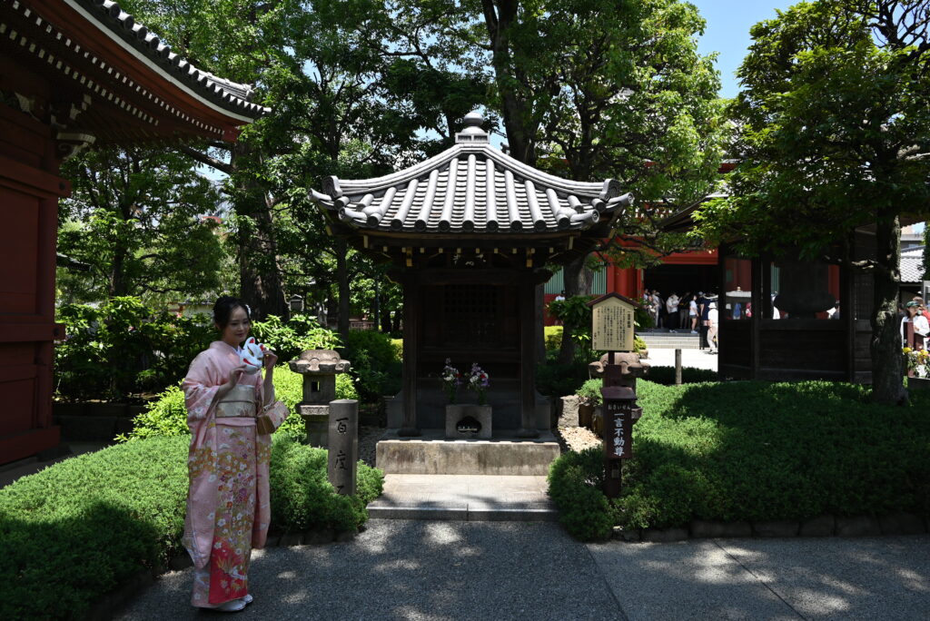 W Asakusie istnieje duża liczba wypożyczalni które nie tylko ubiorą nas w Kimono/Yukatę, ale też ułożą fryzurę, co pozwoli zwiedzać kompleks w tradycyjnym stroju. Można też zamówić sesję foto, jeśli nie mamy ze sobą profesjonalnego sprzętu lub chcemy być na zdjęciach wszyscy. Warto wcześniej rezerwować skorzystanie z tej atrakcji – kosztuje ok. 100-200zł (zależnie od rodzaju kimona i dodatków), a jeśli zwiedzicie „boczne” alejki o których wspominam, nie powinno być problemu ze zrobieniem sobie fajnego zdjęcia, jakby z minionej epoki