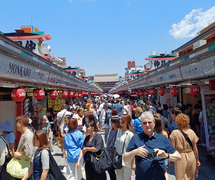 Do głównej sali prowadzi alejka handlowa Nakamise. Można tam kupić mydło i powidło i to miejsce dawno odeszło już od pierwotnej formy sklepików z lokalnych przysmaków – poczułem się trochę jak na naszej Jasnej Górze. Z miejsc które zwiedziłem w Japonii, Senso-ji to jedyne miejsce gdzie jest taka komercyjna alejka, nie kojarzę żadnej innej świątyni i chramu które mają sklepiki, nawet w Kiyomizu-dera w Kioto sklepy kończą się przed pierwszą bramą i nie są częścią kompleksu.