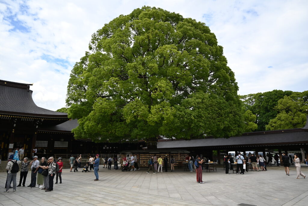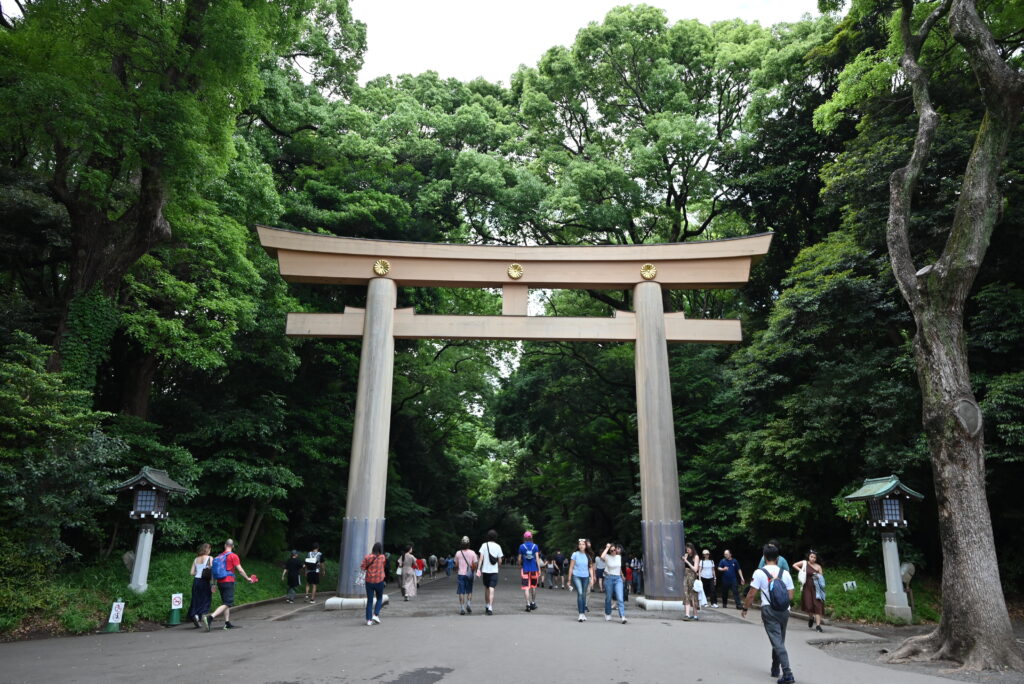 Z Parco blisko jest już do parku Yoyogi, oraz świątyni Meiji-jingu. Jest ona poświęcona cesarzowi Matsuhito który zasłynął obaleniem sioguna Tokugawy i zakończeniem ery siogunatu w Japonii, dając fundamenty nowoczesnemu i dynamicznie rozwijającemu się państwu japońskiemu. W podzięce wybudowano dla niego chram shintoistyczny (poświęcony także cesarzowej Shoken), który otoczony jest świętym lasem, które wraz z przylegającym parkiem Yoyogi stanowią chyba największy zielony teren w ogromnym Tokio. Po drodze do parku mijamy ogromną torii a także uświęcone beczki sake (kazaridaru; w rzeczywistości puste), przekazywane co roku przez browarników z całego kraju w podzięce za pomyślność i z prośbą o sukcesy w kolejnych latach. Każda beczka jest owinięta słomianą matą (komakaburi) i ozdobiona unikalnym logo producenta, tworząc ogromną kolorową ścianę. Dla Japończyków cesarz Meiji jest taką świętością, że istnieje absolutny zakaz fotografowania ołtarza głównego – do tego stopnia, że stoi tam funkcjonariusz który nie tylko przegania fotografów, ale nakazuje usunięcie zdjęć i pokazanie, że nie mam ich już na telefonie/aparacie!