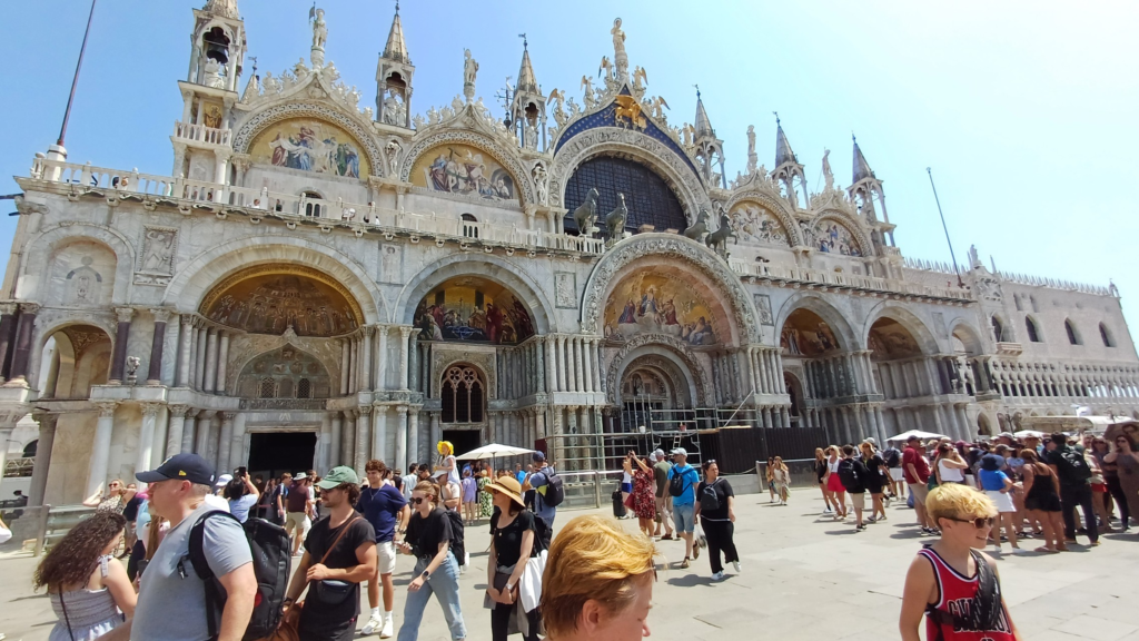 Niestety, im bliżej placu św. Marka tym bardziej doskwierał upał – muszę przyznać, że dosłownie „odhaczyliśmy” ten punkt wycieczki i musiałem wręcz ciągnąć rodzinę, żeby zobaczyć Bazylikę św. Marka. Wynika z tego, że będzie trzeba jeszcze kiedyś zajechać do Wenecji, chociaż zdecydowanie nie w sezonie letnio-wakacyjnym, a przy połowę niższych temperaturach…
