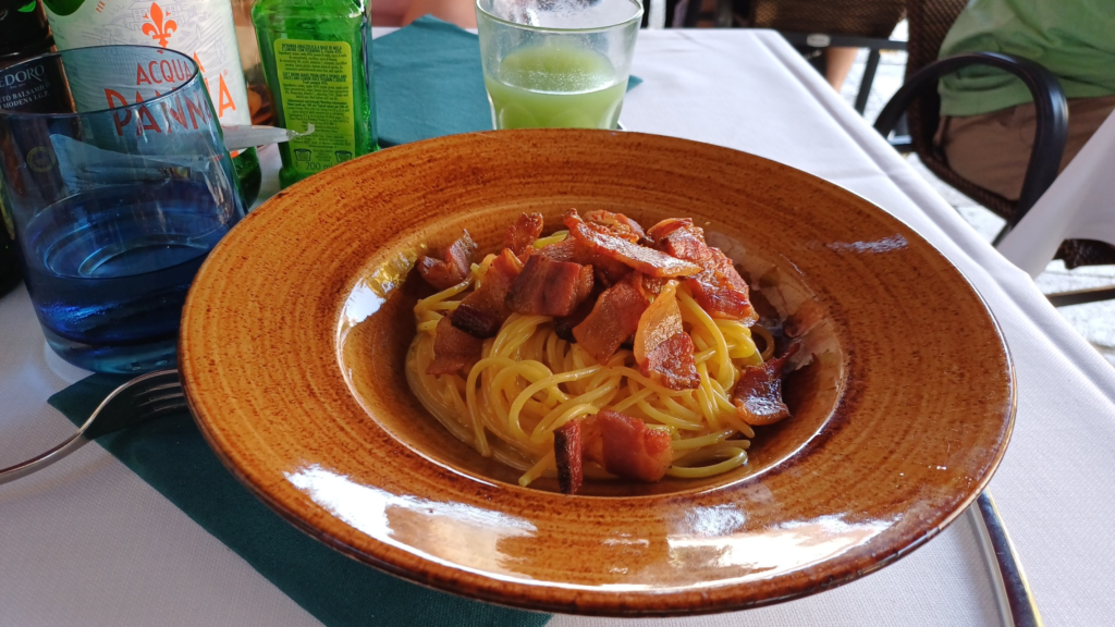 Po zaliczeniu głównego punktu programu przyszła pora na obiad – wybraliśmy pobliską restaurację Al Bagolo, zamawiając klasyki w stylu Margherity i Carbonary – i trzeba przyznać, że jednak we Włoszech smakują one znacznie lepiej nawet w przeciętnej restauracji. Oczywiście w towarzystwie kawy.